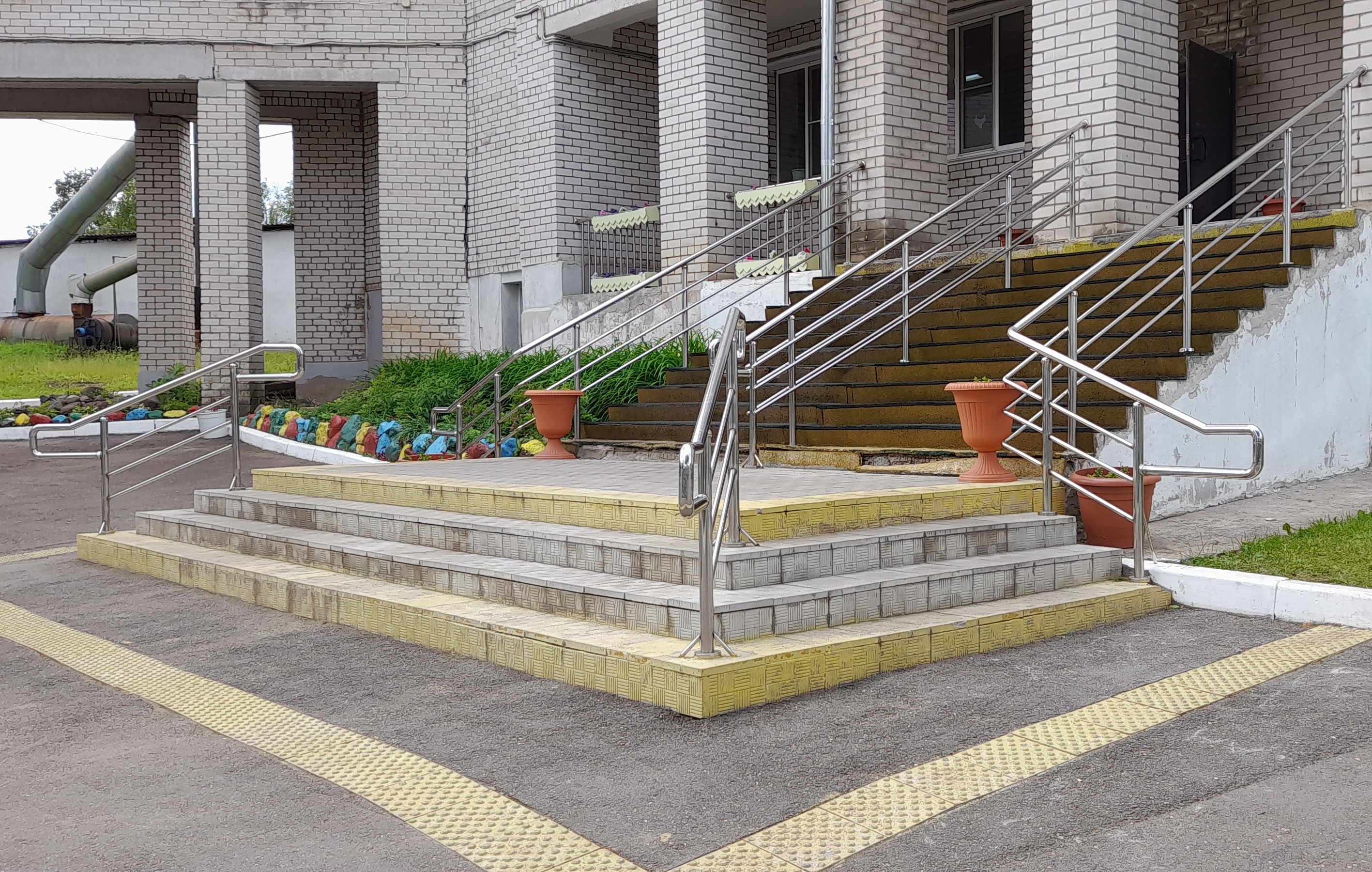 Вход на территорию учреждения доступен для инвалидов-колясочников, имеется стоянка автотранспорта для инвалидов, пешеходный путь имеет асфальтное покрытие. На территории установлены скамейки, беседки с навесами для отдыха. Вход в отделение милосердия оборудован пандусом с поручнями и навесом.