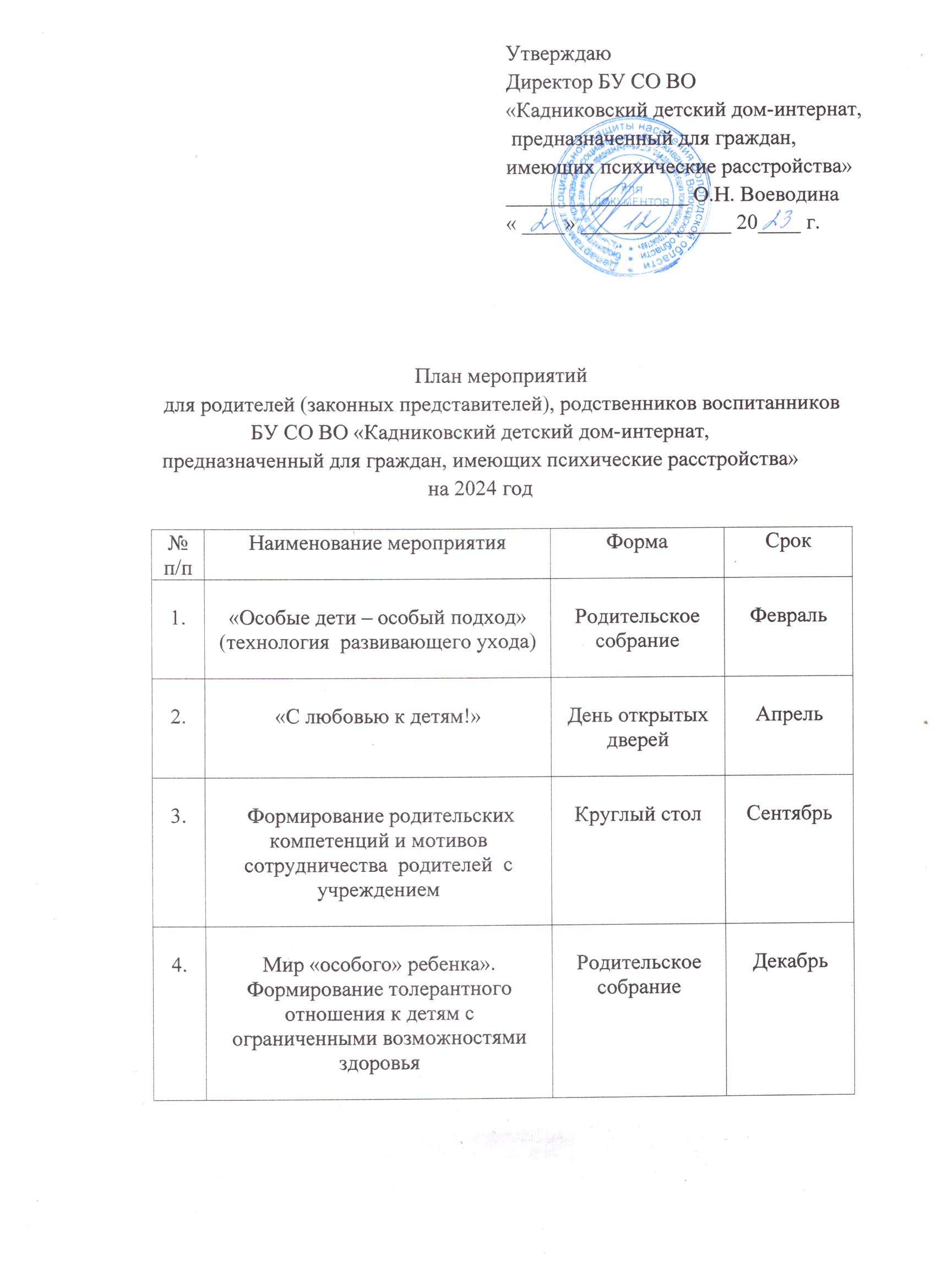 План мероприятий для родителей (законных представителей), родственников воспитанников