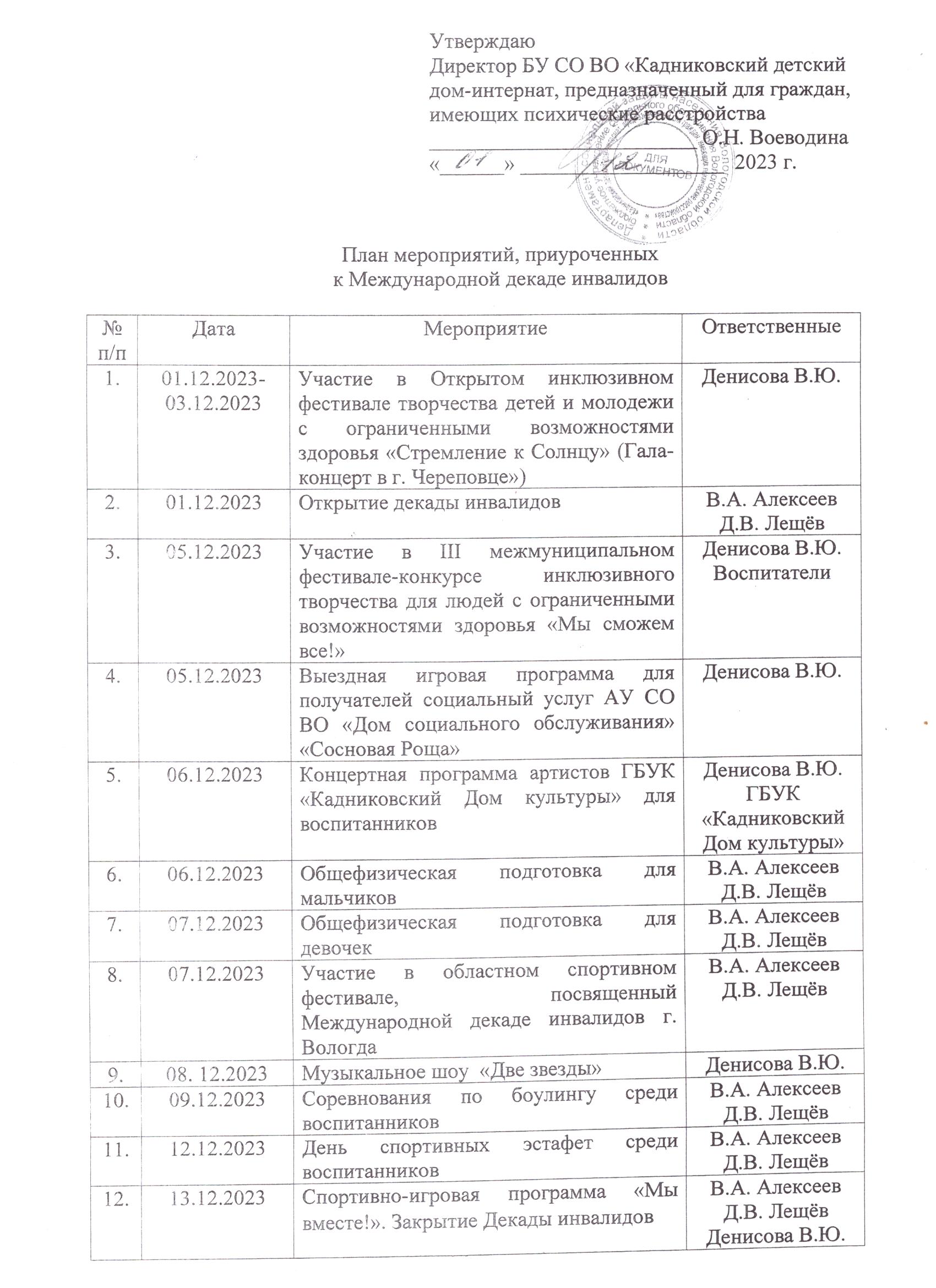 План мероприятий на Декаду инвалидов, Декаду спорта.