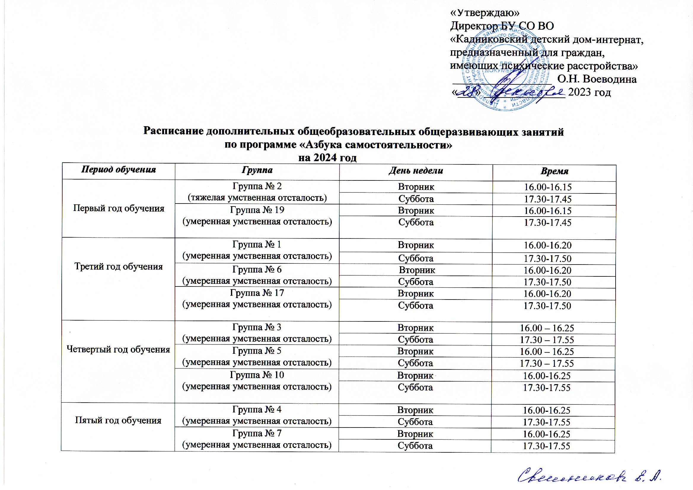 Расписание дополнительных общеобразовательных общеразвивающих занятий по программе «Азбука самостоятельности» на 2025 г.